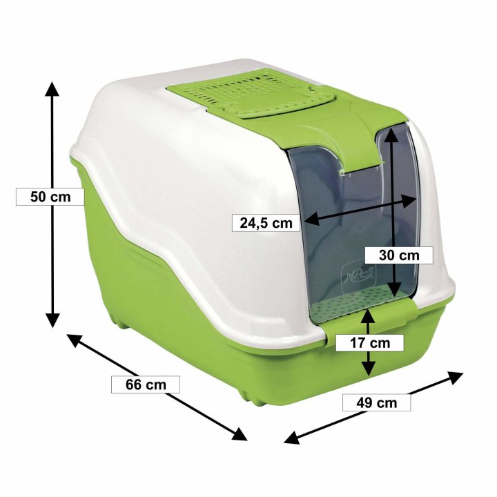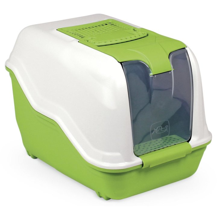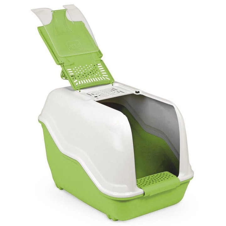 Тази стилна котешка тоалетна с висока облегалка предлага достатъчно място за вашата котка и удобство, както за вас така и за вашият любимец. Котешката тоалетна е закрита, а интегрирания филтър предлагат защита от всички неприятни миризми. Малкият борд на входа улеснява влизането и излизането. За лесно почистване капакът с люлеещата се предна врата може лесно да се отвори нагоре. За транспортиране и преместване на тоалетната е вградена практична дръжка за носене.